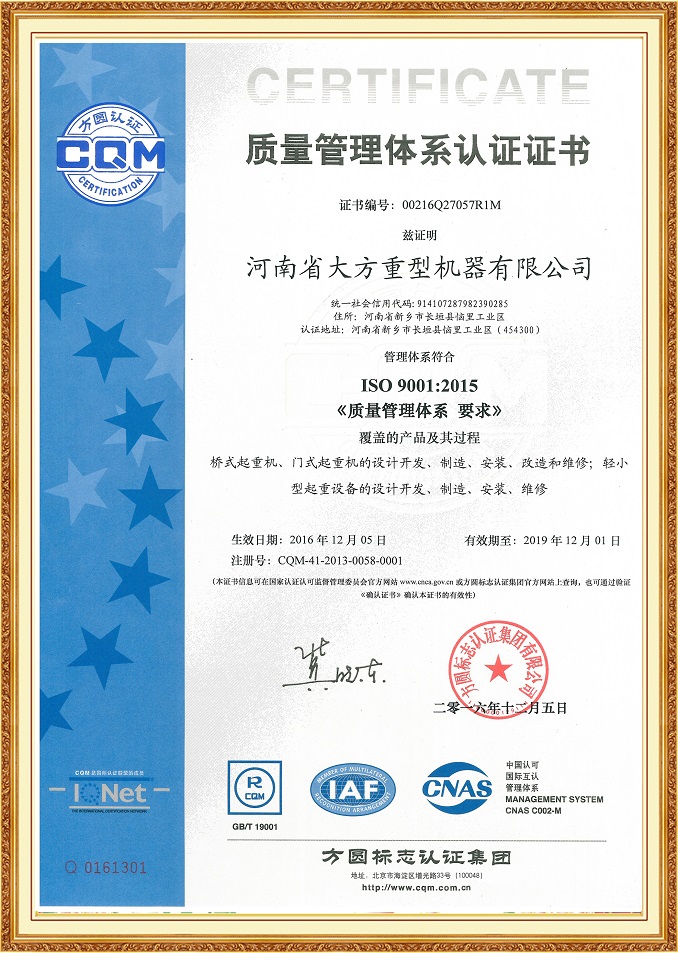大方集團(tuán)始建于2006年,注冊(cè)資金2.3億元,占地面積85萬(wàn)平方米,員工1600多人,承接起重機(jī)械生產(chǎn)業(yè)務(wù),年產(chǎn)各類(lèi)起重機(jī)達(dá)70000余臺(tái)套,鋼結(jié)構(gòu)達(dá)100000余噸,是集橋門(mén)式起重機(jī)、電動(dòng)葫蘆、鋼結(jié)構(gòu)等產(chǎn)品的設(shè)計(jì)、研發(fā)、制造、銷(xiāo)售為一體的大型綜合性企業(yè)集團(tuán)。集團(tuán)成立以來(lái)始終秉承誠(chéng)信經(jīng)營(yíng)理念,先后獲得守合同重信用企...【查看更多】